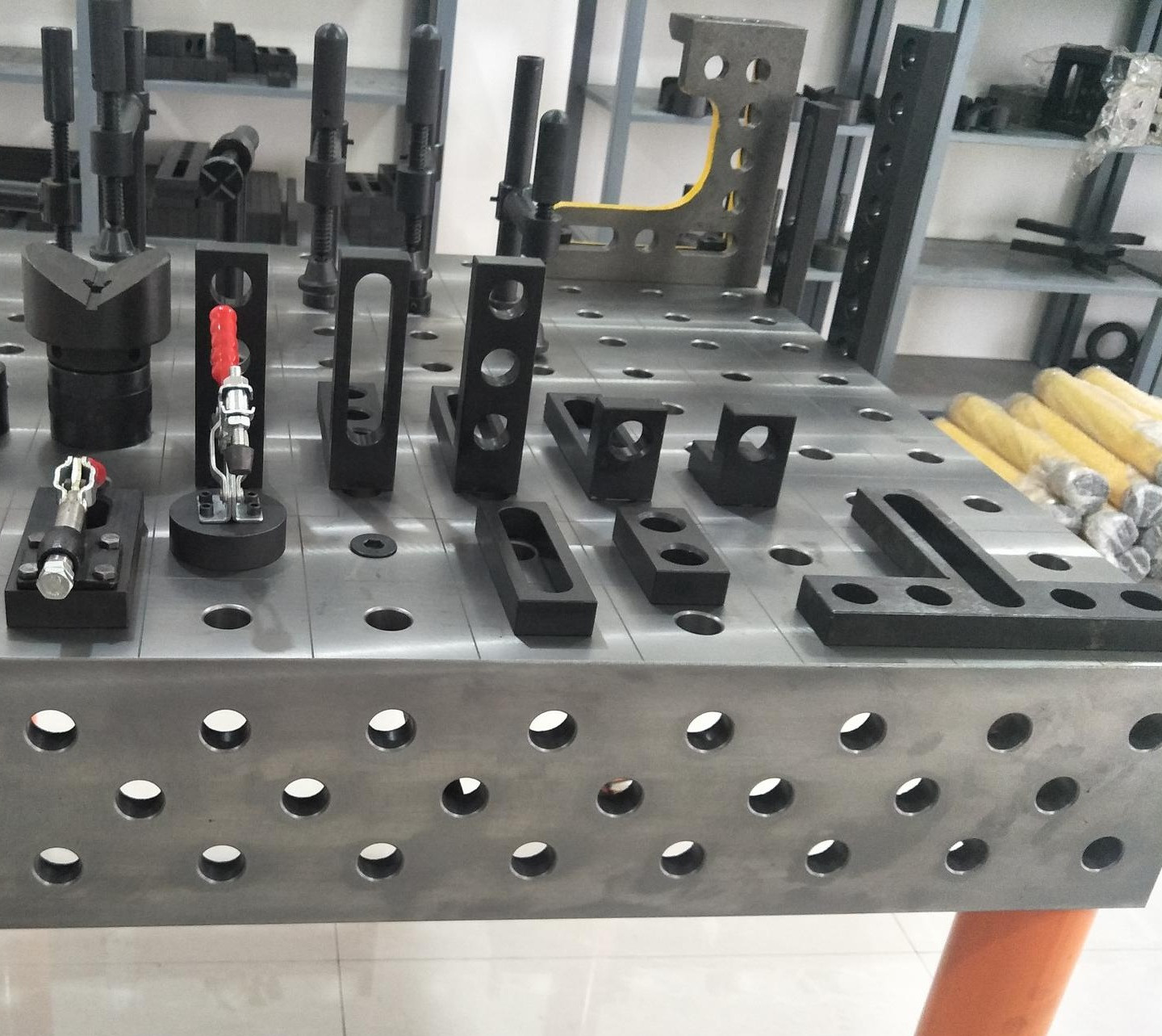 4、 重復(fù)性:三維柔性組合焊接工作臺的臺面有鑄鐵/鋼結(jié)構(gòu)件/加工件/模塊化組件組合而成,其性能非常穩(wěn)定,如使用不當造成部件損壞時,也不用報廢整張臺,只要非常少的成本就可以 換單個部件。焊接平臺經(jīng)過加工處理,在焊接過程中,僅需低廉的防飛濺液即可免除工作臺表面的焊接飛濺。