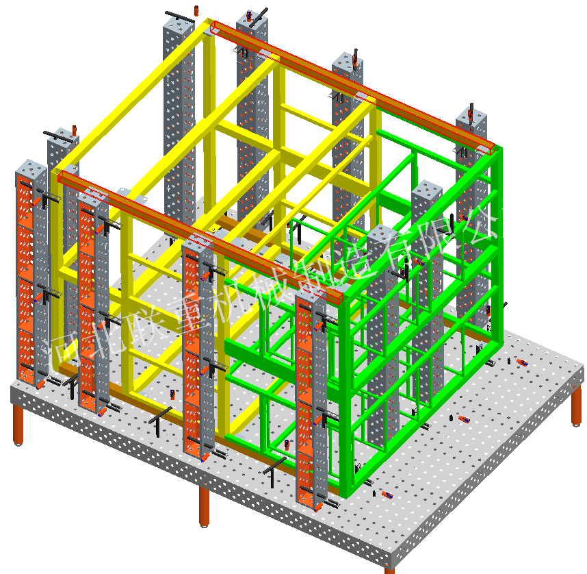 2、柔性化:柔性三維組合焊接工裝平臺的承載能力高,鋼性穩(wěn)定,它的五個面均加工有規(guī)則的孔,并刻有網(wǎng)線。焊接平臺可方便地延伸和擴展,組合。經(jīng)擴展的標準臺面可模塊化的定位和夾緊直接連接在一起。在安裝、調(diào)整和定位工件過程將柔性三維組合焊接工裝系統(tǒng)的通用功能展示的,尤其在了大型工件方面的應(yīng)用上。拼裝方式多樣,用戶只要充分發(fā)揮想象力,幾乎可達到任何夾具同樣的定位和夾緊功能。拼裝,裝拆方便;工作臺面可以根據(jù)工件形狀、大小進行拼裝組合。臺面上的刻度和模塊尺寸的設(shè)計,使操作工人不用量具就可以根據(jù)工件尺寸搭出所需要的工裝。